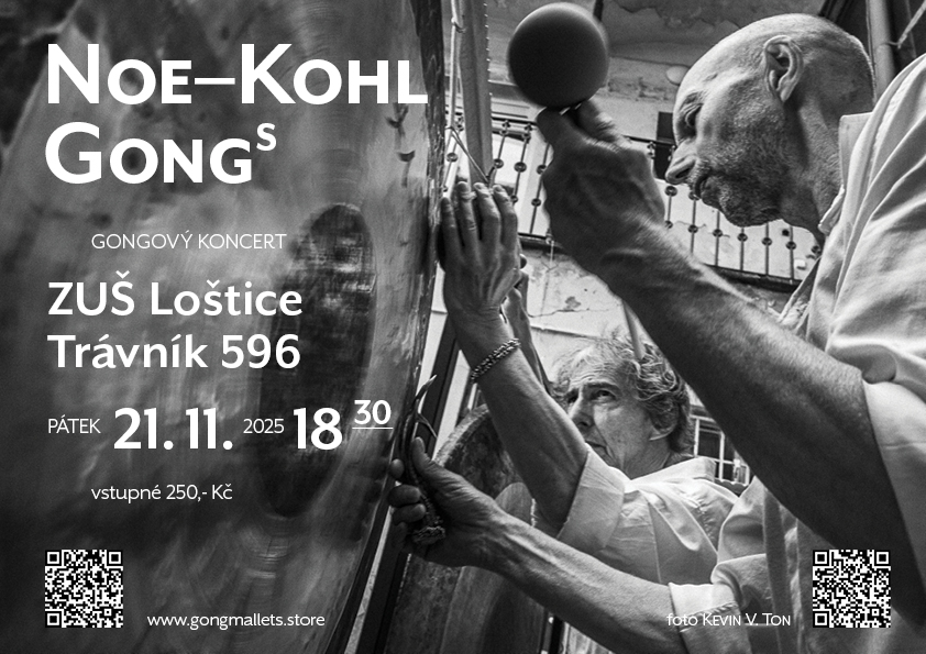 Zcela nečekaně zahraje uskupení NOE-KOHL na gongy pod širým nebem v Praze a to hned 2x: V pondělí 12. 9. od 18 hodin na Libeňském ostrově U Budyho a v úterý 13. 9. také od 18 na akci v místě bývalého nádraží Těšnov (Byla přesunuta z 8. 9. na 13.) Detaily zde: https://sonicity.cz/cs/prague-tesnov-ajznbon Těším se na viděnou